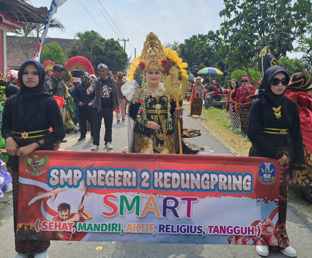 Kedungpring, Lamongan – Semangat kemerdekaan begitu terasa dalam perayaan Hari Ulang Tahun ke-79 Republik Indonesia di Kecamatan Kedungpring. Salah satu acara yang paling dinantikan adalah karnaval budaya yang diikuti oleh seluruh lapisan masyarakat, termasuk SMP Negeri 2 Kedungpring. Dengan penuh semangat, siswa-siswi SMPN 2 Kedungpring menampilkan beragam kreasi dan inovasi dalam karnaval yang meriah ini. Tak lupa siswa siswi yang tergabung dalam tim drum band juga menunjukkan aksi yang memukau dengan lagu-lagu penuh semangat.